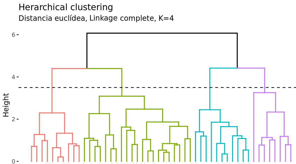 The term clustering refers to a wide range of techniques whose purpose is to find patterns or groups (clusters) within a set of observations. Partitions are established so that observations within the same group are similar to each other and different from observations in other groups. It is an unsupervised learning method, as the process does not take into account which group each observation actually belongs to (if such information exists). This characteristic is what differentiates clustering from classification methods, which do use the true classification during training.
