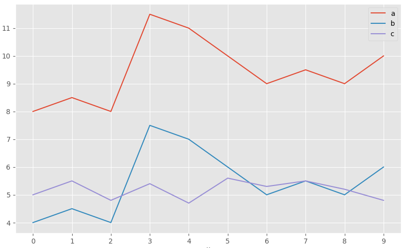 The following image shows the profile of 3 observations. a and b have exactly the same pattern, but b is shifted 4 units below a. Observation c has a different pattern from the others, but its value range is similar to that of b. According to Euclidean distance, observations b and c are the most similar since the sum of squared distances between their values is smaller. However, according to Pearson correlation, the most similar observations are a and b since they follow the same pattern.