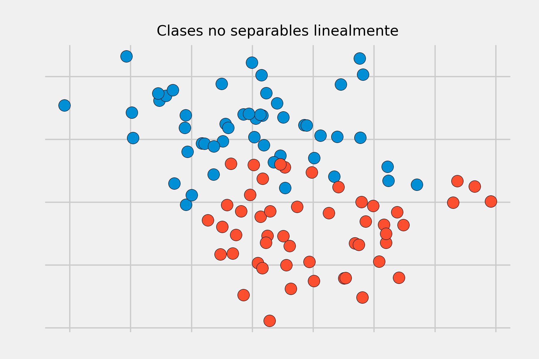 El maximal margin hyperplane descrito en el apartado anterior es una forma muy simple y natural de clasificación siempre y cuando exista un hiperplano de separación. En la gran mayoría de casos reales, los datos no se pueden separar linealmente de forma perfecta, por lo que no existe un hiperplano de separación y no puede obtenerse un maximal margin hyperplane.