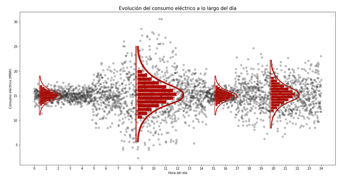 One way to predict the probability that electricity consumption will exceed a given value at a given hour is to model its probability distribution as a function of the time of day.