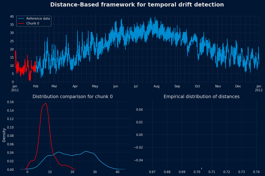 This framework implements a distance-based, data-driven approach to detect temporal drift — changes in the underlying data distribution over time — within time series data. It constructs an empirical baseline of normal behavior from historical (reference) data and uses it to assess whether newly observed data deviates significantly from the established norm.