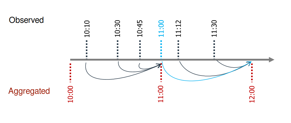 Now, suppose that the predictions for the next day need to be made at 11:00 AM each day to allow enough time. This means that at 11:00 on day you have to forecast the hours [12, 13, 14, 15, 16, 17, 18, 19, 20, 21, 22, 23] of the same day and the hours [0, 1, 2, 3, 4, 5, 6, 7, 8, 9, 10, 11, 12, 13, 14, 15, 16, 17, 18, 19, 20, 21, 22, 23] of day . This means that a total of 36 hours into the future have to be predicted, although only the last 24 hours have to be stored.