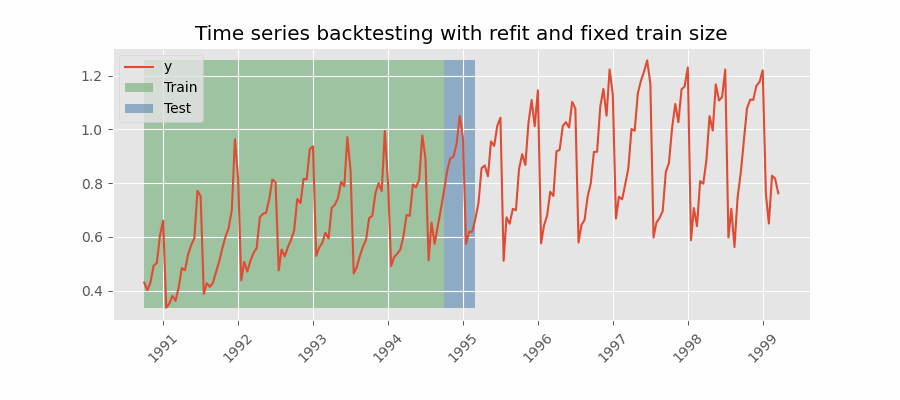Backtesting with refit and increasing training size (fixed origin)